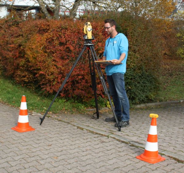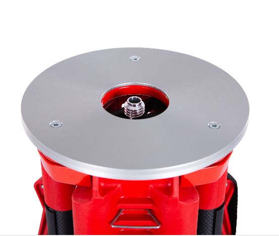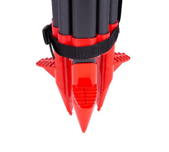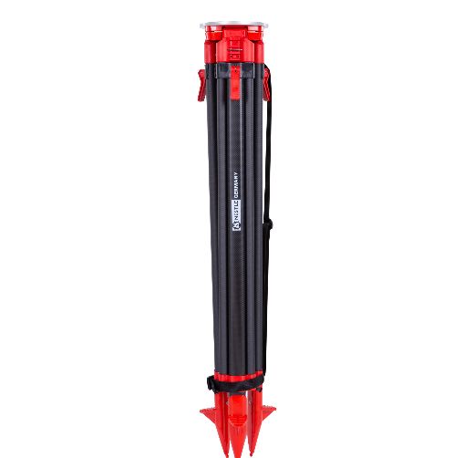 Karbonstativ GEO Delta, Arbeitsbereich 93-169cm, Transportlänge 108cm, geringes Gewicht 3,7kg, schwarz/grau/hellrot, Kopfplatte flach, Metall, dreieckig, mit Schraubklemmung, für Totalstationen und Scanner bis 10kg, Anschluss 5/8"