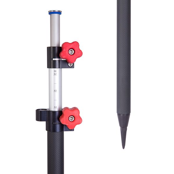 Karbon-Aluminium, doppelt teleskopierbarer Prismen und Antennenstab, neutral, Karbon-Außenrohr Ø 32mm / Aluminium-Mittel- und Innenrohr Ø 25/18mm, WM 14cm, robuste Schraubklemmung, Anschluss: weiblich M12 mit Adapter, Arbeitsbereich: 151-350cm, Transportmaß: 138cm, Gewicht: 1300g
