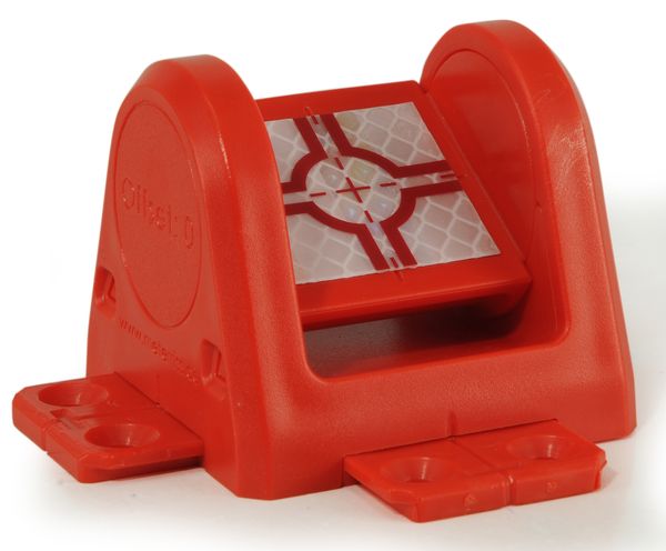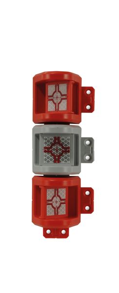 Kunststoff-Gehäuse mit Reflexzielmarke 30x30mm, um 180° drehbar, Reichweite ca. 80m, Kippachshöhe 30mm, integriertes Stecksystem, Rothbucher Systeme, rot, RS183R