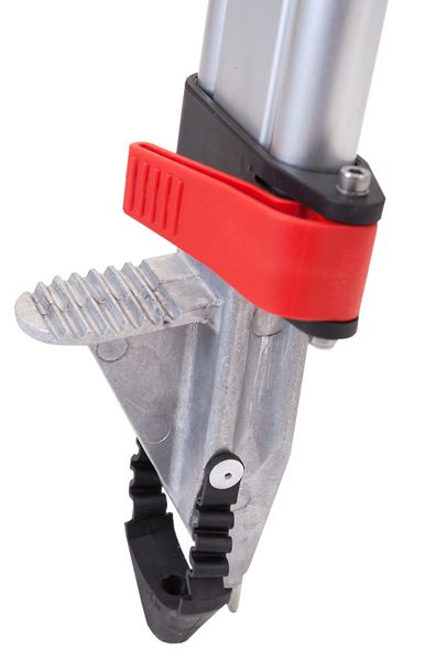 Kurbelstativ Aluminium, schwer, selbsthemmend, doppelte Seitenklemmung, sehr stabiler Trittschuh, Gummifußkappen für glatte Böden, Klemmhebel aus glasfaserverstärktem Polyamid, Arbeitsbereich: 200-391cm, Transportlänge: 209cm, Aluminiumkopf mit Libelle und Spreizstop, Kurbelhub: 35cm, Gewicht; 8100g, Anschluss: 5/8"